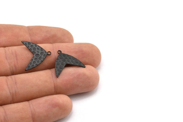 Hammered Oxidized Black Brass Fish Tail Charms With 1 Loop