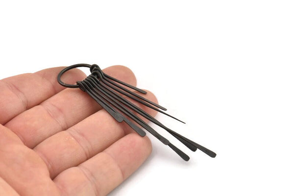 Oxidized Black Brass Hammered Fringed Trim Earring With 1 Loop