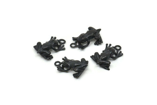 Oxidized Black Brass Frog Charm Earrings With 1 Loop