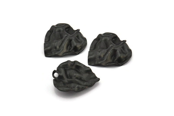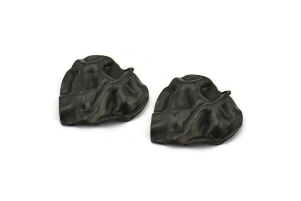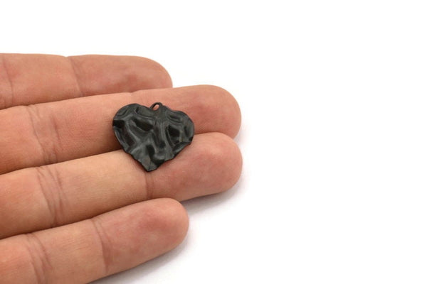 Black Heart Charm, 6 Oxidized Black Brass Heart Charms With 1 Hole (23x23x0.60mm) D0828