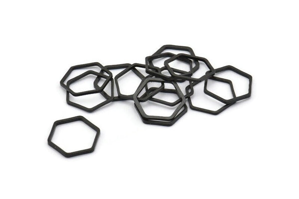 Black Hexagon Charm, 25 Black Oxidized Brass Hexagon Shaped Ring Charms (12x0.80mm) Bs 1171 S1052