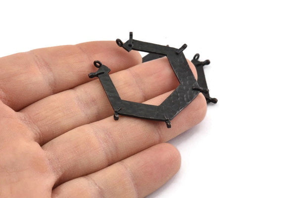 Hammered Oxidized Black Brass Hexagon Pendants With 6 Loops