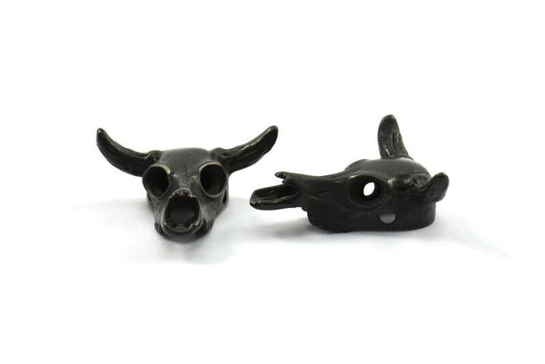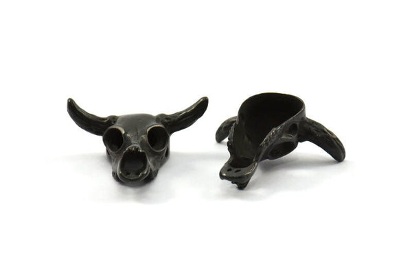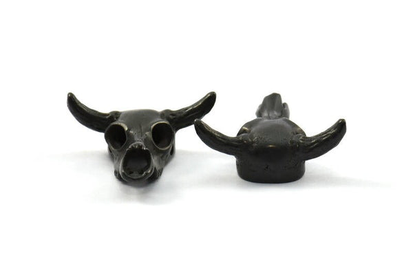 Oxidized Brass Black Large Ox Head Skull Charms, Pendants