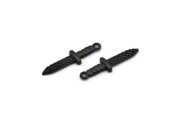 Black Knife Charm, 4 Oxidized Black Brass Knife Charms With 1 Loop (28x7x2mm) N1647 S1178