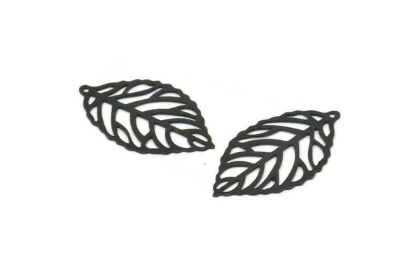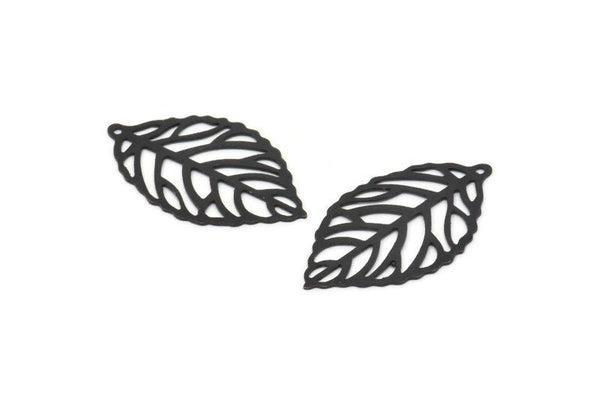 Oxidized Black Brass Leaf Charm Earrings With 1 Hole