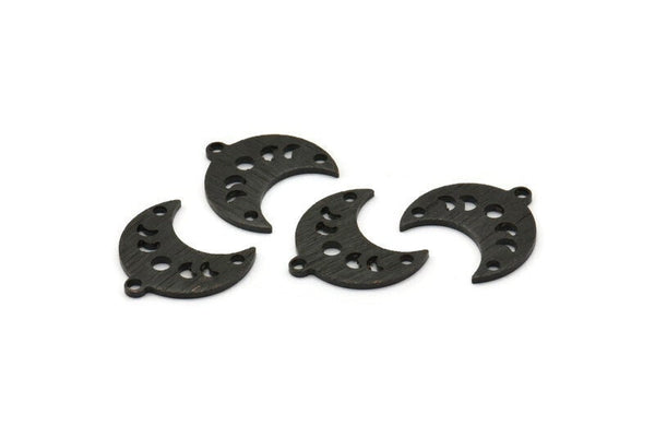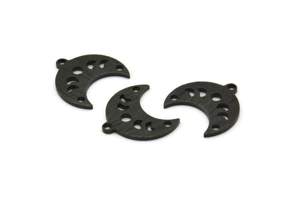 Textured Oxidized Black Brass Crescent Moon Phases Charms With 1 Loop And 2 Holes