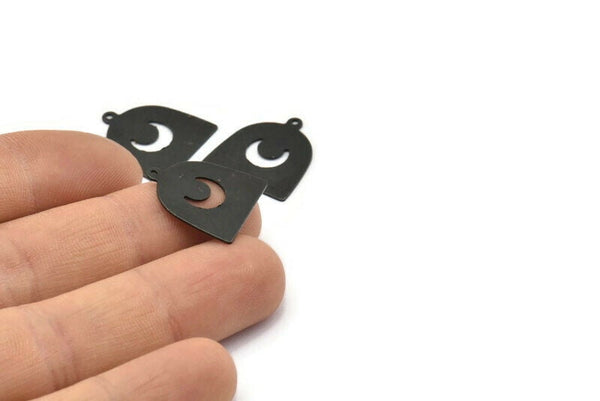 Black Moon Charm, 12 Oxidized Black Brass D Shape Charms With 1 Loop (18x17x0.50mm) M1069