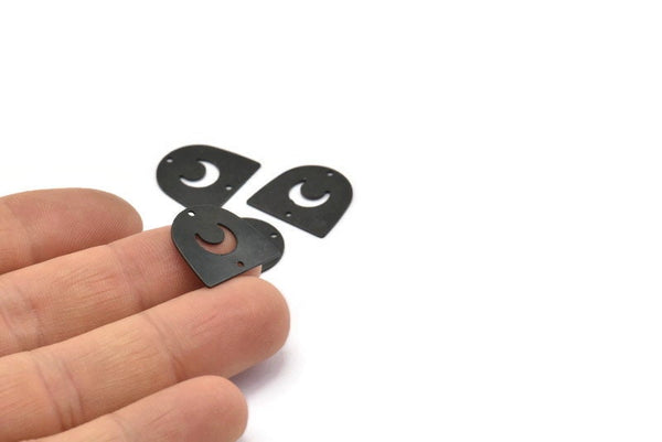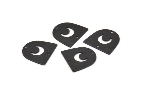 Black Moon Charm, 12 Oxidized Black Brass D Shape Charms With 2 Holes (16x17x0.50mm) M1064