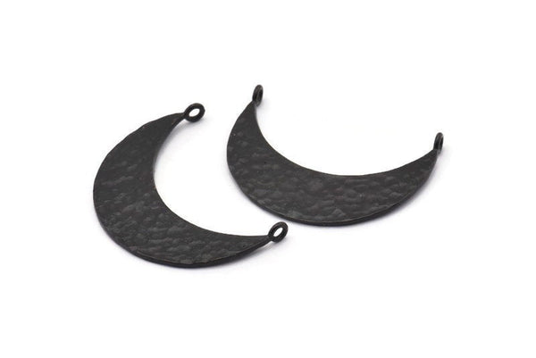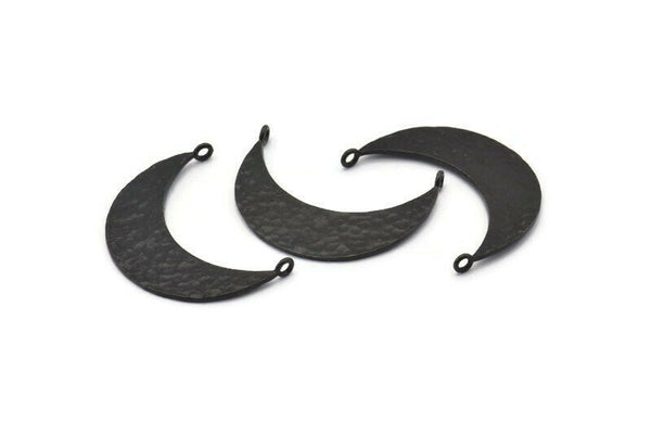 Hammered Oxidized Black Brass Crescent Moon Pendants With 2 Loops