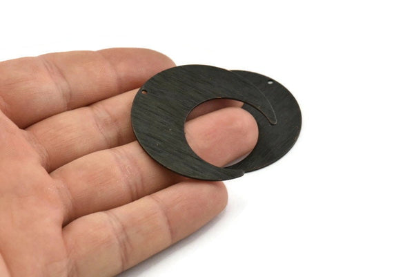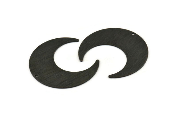 Black Moon Charm, 2 Textured Oxidized Black Brass Crescent Moon Charms With 1 Hole (42x16x0.80mm) M057