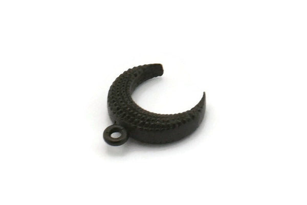 Oxidized Black Brass Textured Horn Charms With 1 Loop