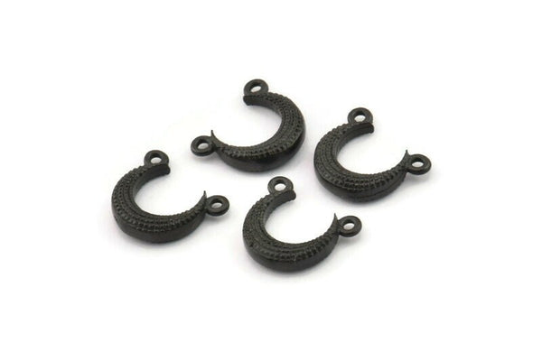 Oxidized Black Brass Textured Horn Charms With 2 Loops
