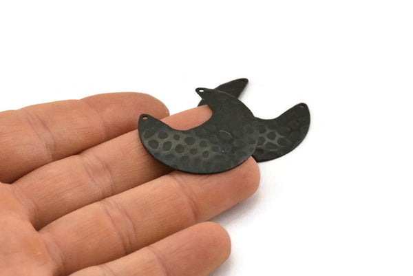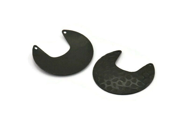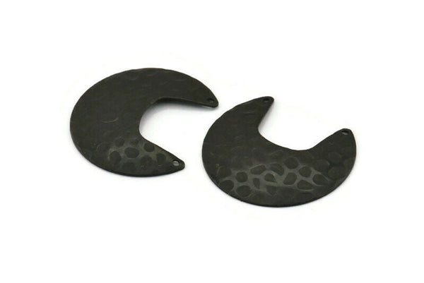 Black Moon Charm, 4 Textured Oxidized Black Brass Moon Charms With 2 Holes (33x30x0.60mm) D0767