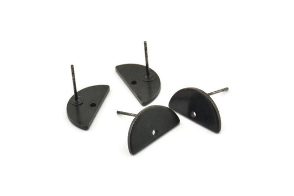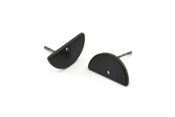 Oxidized Black Brass Semi Circle Stud Earrings With 1 Hole