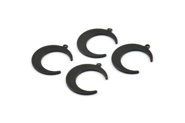 Black Moon Pendant, 12 Oxidized Black Brass Moon Pendants With 1 Loop (20x17x1mm) D0567 S1159