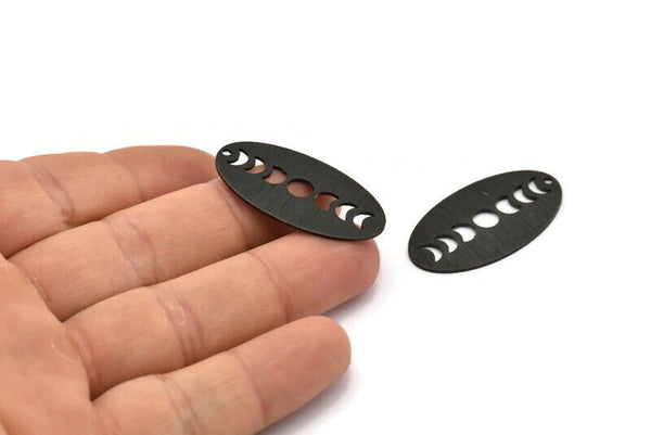 Black Oval Charm, 4 Textured Oxidized Black Brass Oval Moon Phases Charms With 1 Hole, Pendants (35x19x0.80mm) M02191