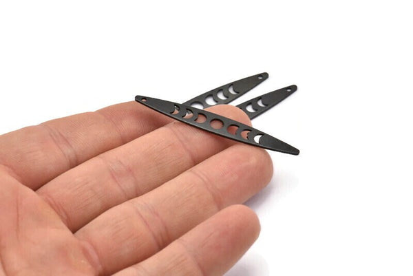 Oxidized Black Brass Oval Moon Phases Charms With 1 Hole