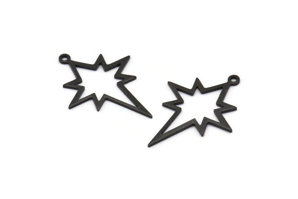 Black Pole Star Charm, 6 Oxidized Black Brass, Black Charms, Black Pole Star Charms With 1 Loop (30x22x0.80mm) M02485 H1016