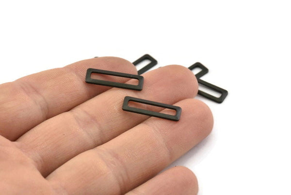 Black Rectangle Charm, 25 Oxidized Black Brass Rectangle Connectors, Findings (19x6x1mm) B0037 S1157