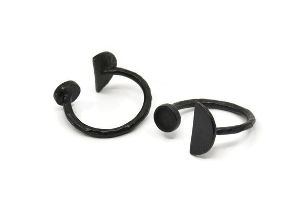Oxidized Black Brass Moon And Planet Ring With 1 Stone Setting - Pad Size 5mm