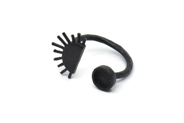 Oxidized Black Brass Moon And Planet Ring With 1 Stone Setting - Pad Size 6mm