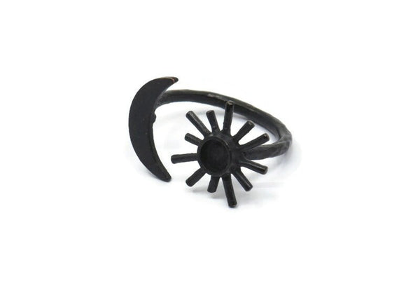 Oxidized Black Brass Moon And Sun Ring With 1 Stone Setting - Pad Size 4mm