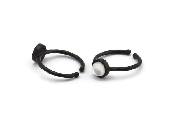 Oxidized Black Brass Round Ring With 1 Stone Setting - Pad Size 6mm