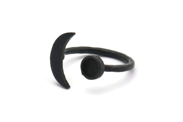 Oxidized Black Brass Moon And Planet Ring With 1 Stone Setting - Pad Size 5mm