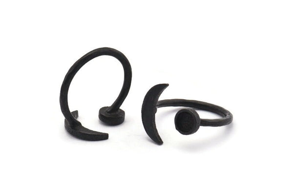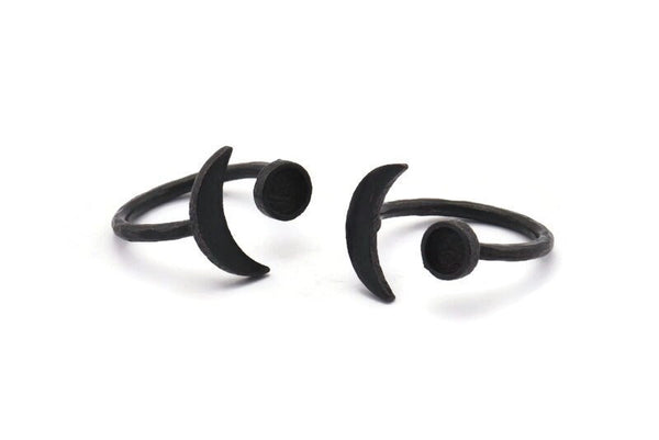 Black Ring Settings, 3 Oxidized Black Brass Moon And Planet Ring With 1 Stone Setting - Pad Size 5mm N0821 S1164