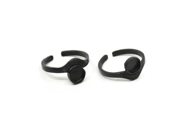 Black Ring Settings, 4 Oxidized Black Brass Adjustable Sunrise Rings - Pad Size 6mm N0738