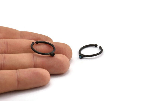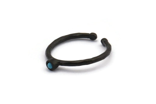 Oxidized Black Brass Round Ring With 1 Stone Setting - Pad Size 2mm