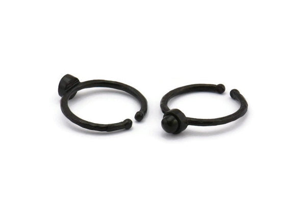 Oxidized Black Brass Round Ring With 1 Stone Setting - Pad Size 4mm