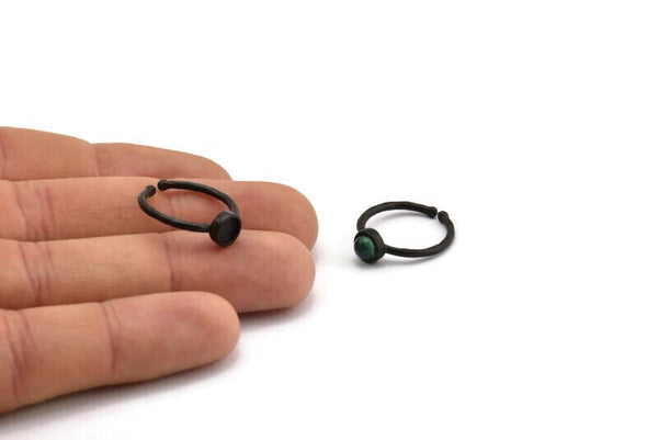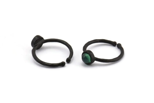 Oxidized Black Brass Round Ring With 1 Stone Setting - Pad Size 5mm