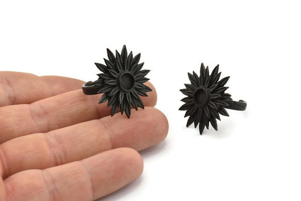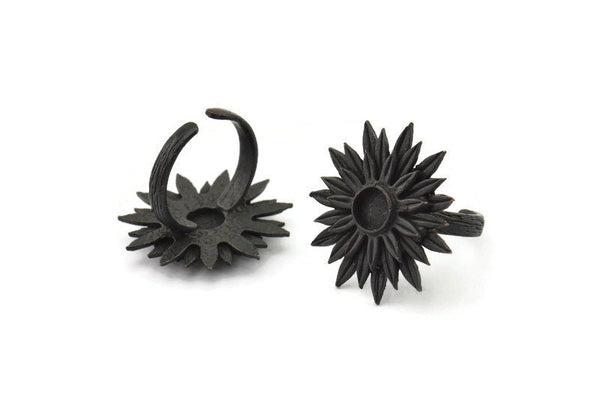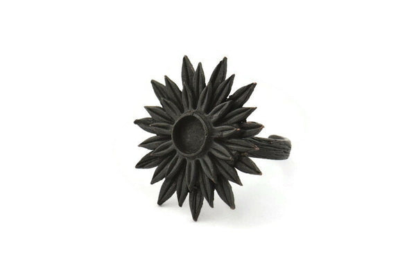 Oxidized Black Brass Adjustable Sunflower Ring - Pad Size 6mm