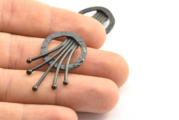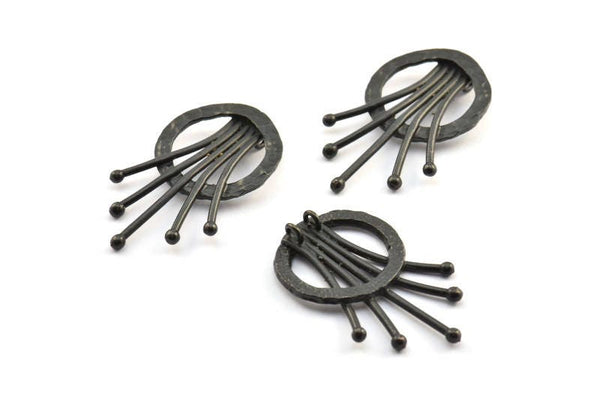 Oxidized Brass Black Rosette Pendants With 2 Loops