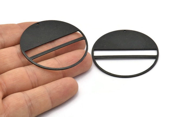 Black Round Charm, 2 Oxidized Black Brass Round Charms With 1 Hole, Stamping Blanks (43x0.90mm) M656