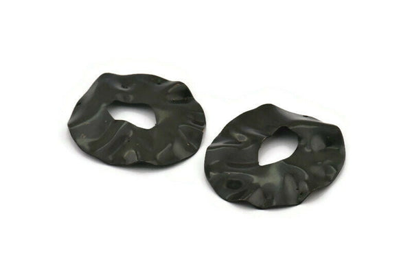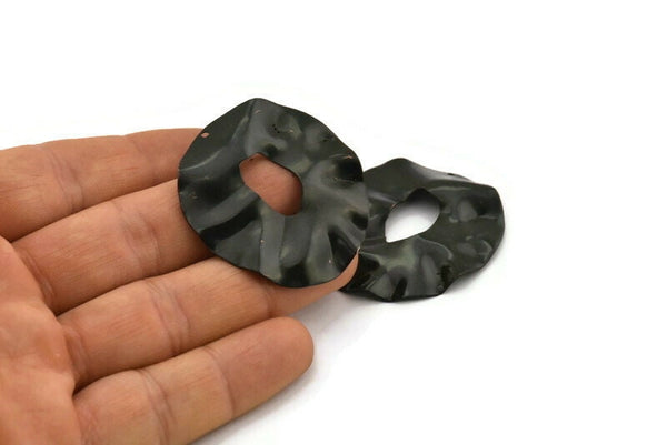 Oxidized Black Brass Wavy Round Charm With 1 Hole