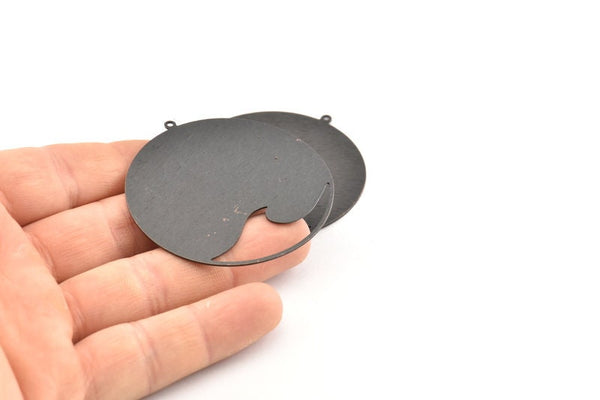 Black Round Charms, 2 Textured Oxidized Black Brass Round Charms With 1 Loop, Pendants, Earrings, Findings (51x54x0.60mm) D1004 S787