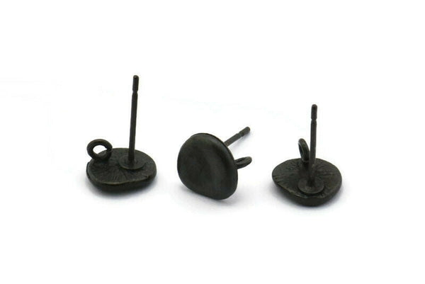 Oxidized Black Brass Round Earring Studs, With 1 Loop