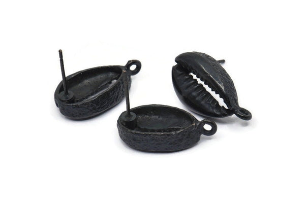 Oxidized Black Brass Cowrie Shell Earring with 1 Loop