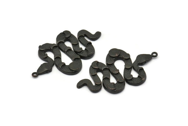 Black Snake Pendant, Oxidized Black Brass Snake And Moon Phases Pendant With 1 Loop, Charms, Findings (47x27x3mm) N1605 S1170