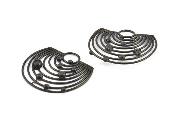 Black Solar System, 1 Oxidized Brass Black Solar System Pendant With 1 Loop, Necklace, Earring (43x46x1.5mm) U145 S296