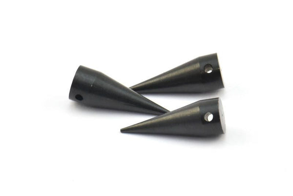 Black Spike Charm, 2 Oxidized Brass Black Long Spike Tribal Pendants (20x7mm) A0763 S632