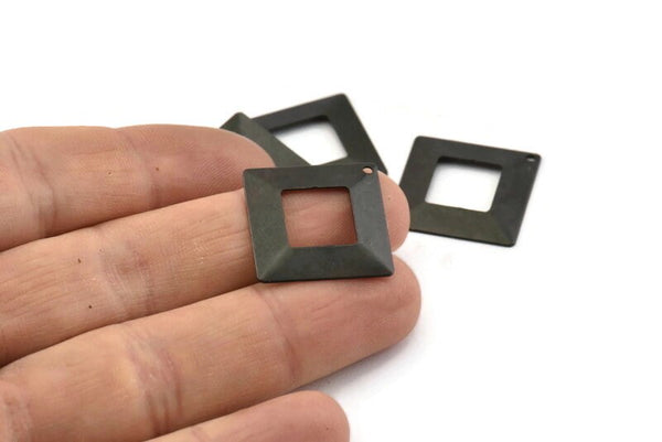 Oxidized Black Brass Square Middle Hole Pyramid Charms With 1 Hole