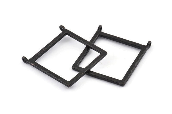 Black Square Pendant, 2 Oxidized Black Brass Square Charms With 2 Loops (32x2.5x2.5mm) U040 H0304
