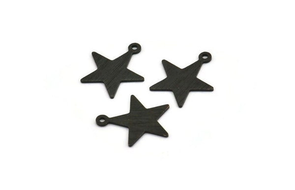 Textured Oxidized Black Brass Star Charms With 1 Loop