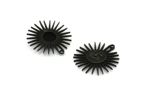 Oxidized Black Plated Brass Sun Charms With 1 Loop