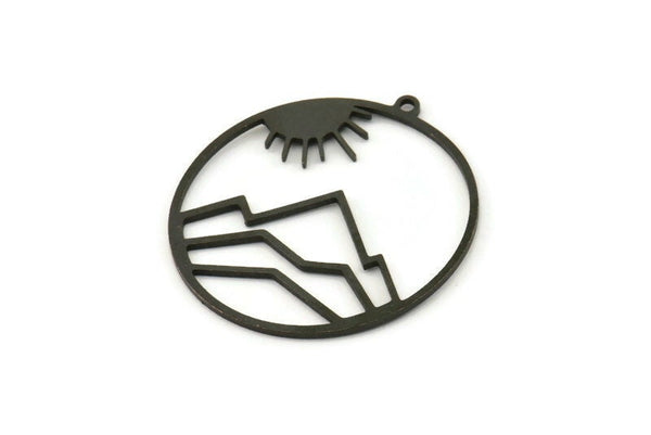 Black Sun Charm, 4 Oxidized Black Brass Sun Charms With 1 Loop, Mountain Charms (37x35x1mm) A3050