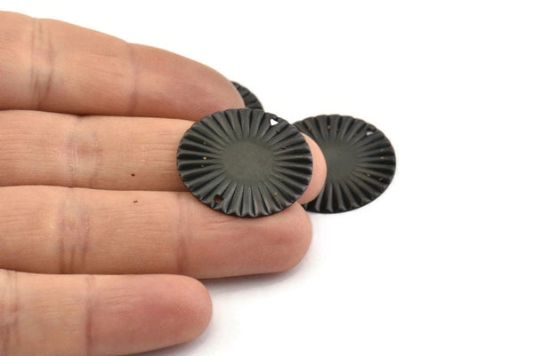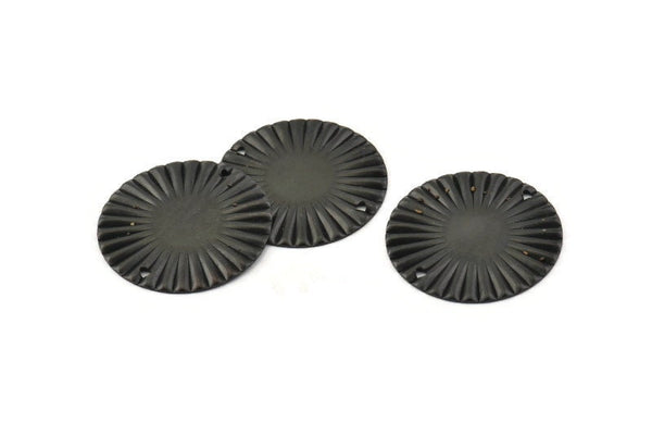 Black Sun Connector, 10 Oxidized Black Brass Round With 2 Holes Connectors (25mm) A0103 H1388