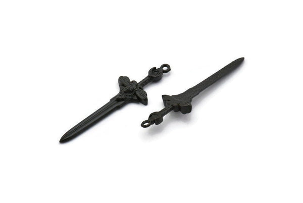 Black Sword Charm, 2 Oxidized Black Brass Sword Charms With 1 Loop, Lion Sword (49x15mm) N1693 S1177